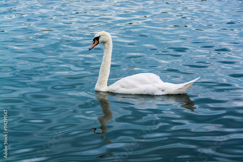 Fototapeta premium Swan in wavy water in summer