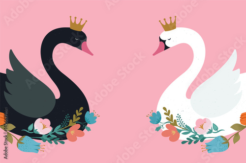 © Marina Zlochin, Obraz premium Swan lake, greeting card, poster and illustration