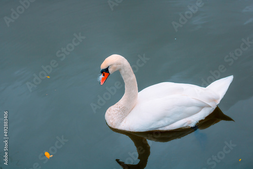 © senerdagasan, Naklejka premium Swan on the lake. A single swan on the lake. Love or grace concept.