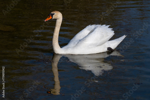 © sikaraha, Naklejka premium Swan on the water surface. Side view