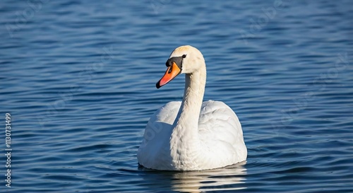 © Sundas, Obraz premium Swan on the water with blue water white swan.