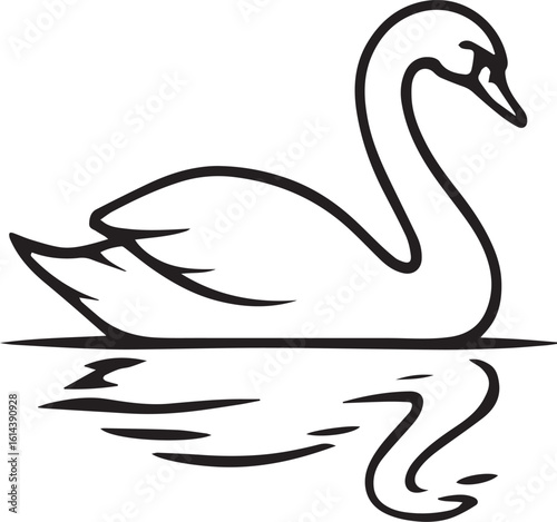 Fototapeta premium Swan on Water Vector – Minimal Black and White Reflection Illustration