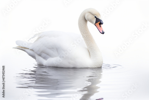 Fototapeta premium Swan, Swan On The Water, White Swan On The Water