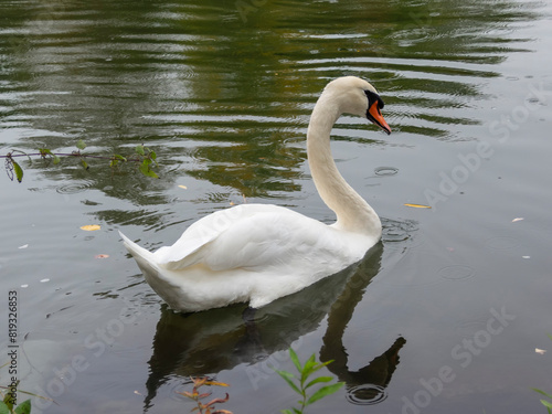 © Yaroshenko-Denys, Fototapeta premium Swan swims away from the shore
