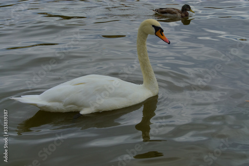 Fototapeta premium swan swin vltava river prague