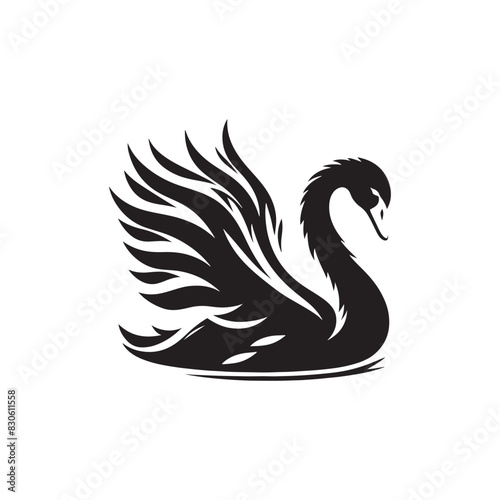 © Wolfe , Obraz premium Swan Vector: Black Vector Silhouette of a Swan- Swan Illustration.