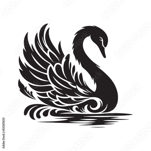 © Wolfe , Obraz premium Swan Vector: Black Vector Silhouette of a Swan- Swan Illustration.