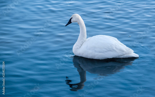 © Yan, Naklejka premium Swans are playing in open water of a lake at early spring time