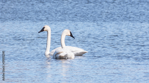 Fototapeta premium Swans are swimming in a lake in early spring at Minnesota