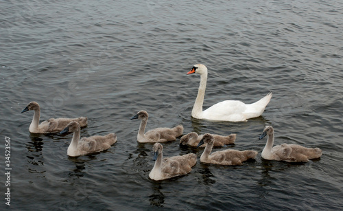 © IndianSummer, Fototapeta premium Swans family