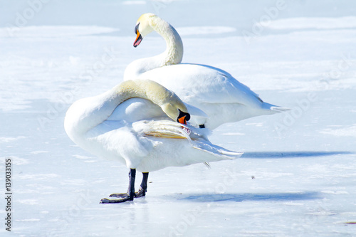© kvdkz, Fototapeta premium Swans on the frozen lake