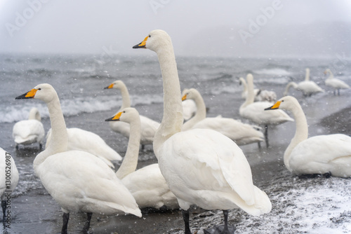 © 善弘 石垣, Fototapeta premium swans on the lake in winter hokkaido japan