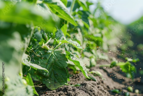 © Azadart, Fototapeta premium Swarm of brightly colored beetles feeding on lush green leaves in a vibrant garden during sunny afternoon