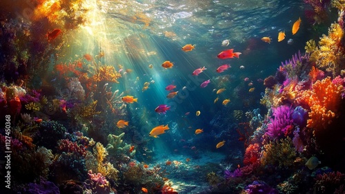 © Sohaib, Fototapeta premium Swarm of Fish in a Coral Reef