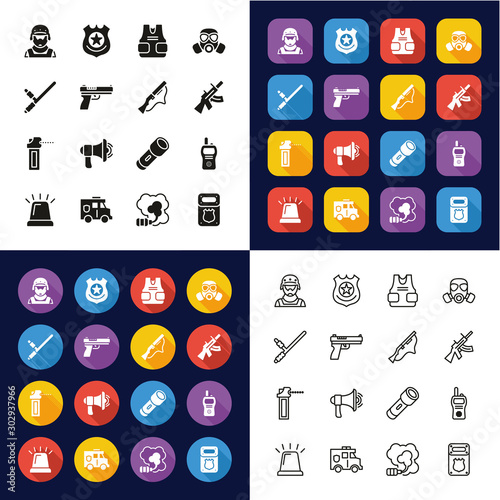 © Bakai, Fototapeta premium SWAT Team Icons All in One Icons -Black & White-Color Flat Design-Thin Line- Set
