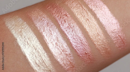 © วิไลพรรณ เที่ยงธรรม, Fototapeta premium Swatches of Shimmering Highlighter on Skin in Soft Natural Light
