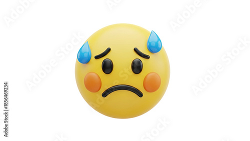 © diana, Fototapeta premium Sweating Nervous Emoji with Blue Droplets on transparent background