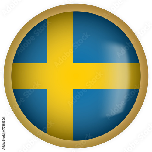 Obraz premium Sweden 3D rounded Flag Button Icon with Gold Frame