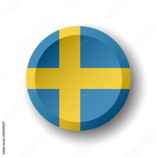Obraz premium Sweden flag - 3D circle button with dropped shadow. Vector icon.