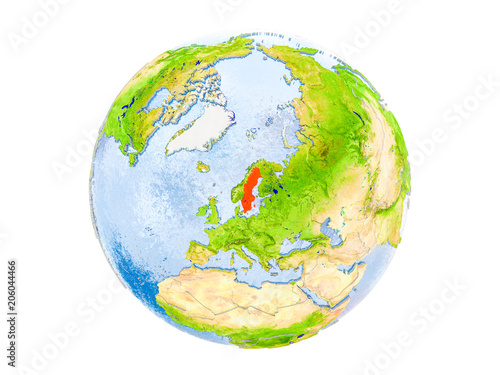 Naklejka premium Sweden on globe isolated