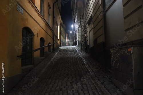 © Andrii, Obraz premium Sweden. The Old Town in Stockholm at night on Christmas and New Year.