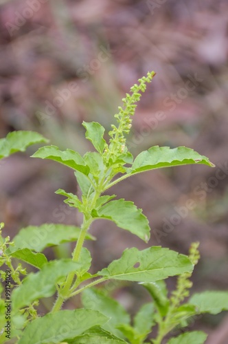 Naklejka premium sweet basil tree in vegetable garden