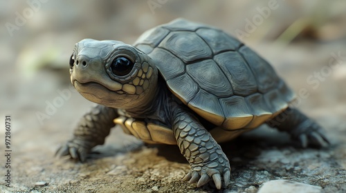 © Mr image, Obraz premium 39. **Sweet 3D render of a baby turtle with tiny legs and a soft shell