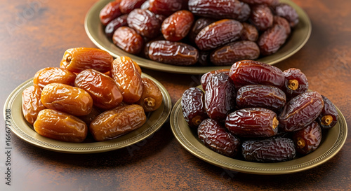 © Sugiri80, Obraz premium Sweet Dates: Golden and Dark Varieties in Elegant Bowls