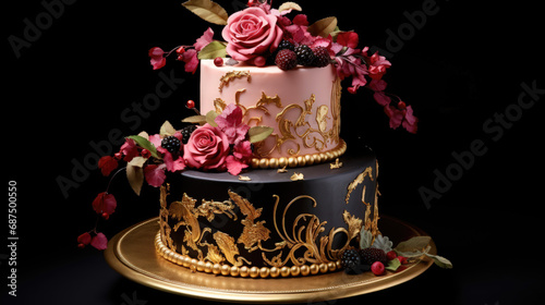 © Graphics.Parasite, Fototapeta premium Sweet Delights: A Decorated Cake with Tiers of Pink and Blue