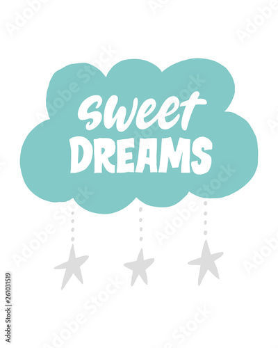 © Elen Koss, Naklejka premium Sweet dreams. Vector hand written lettering quote. Unique hand written lettering phrase. Creative lettering postcard. Calligraphy inspiration graphic design, typography element. Hand written postcard