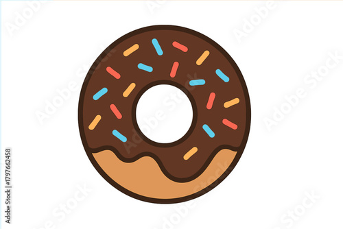 © Andrei, Fototapeta premium Sweet glazed pastry ring with dark chocolate frosting and multicolored candy sprinkles isolated on white