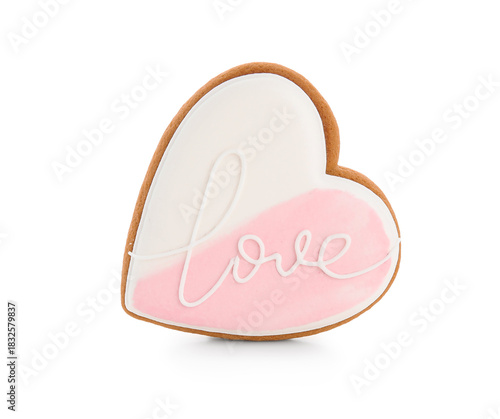 Obraz premium Sweet heart-shaped cookie on white background. Valentine's Day celebration