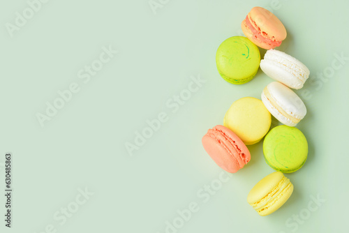 Obraz premium Sweet macaroons on green background