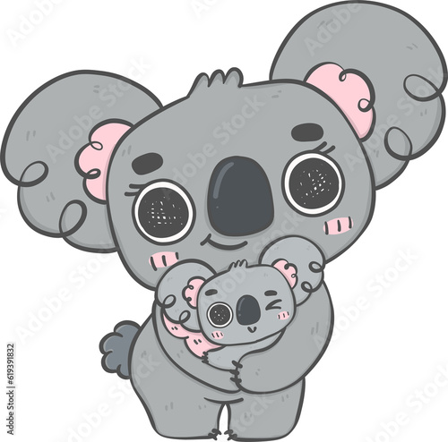 Fototapeta premium Sweet Mother's Day Koala Hug . Adorable Cartoon Hand Drawing Illustrating...