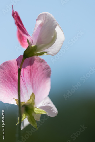 © eugen, Fototapeta premium sweet pea blossoms on a blue background