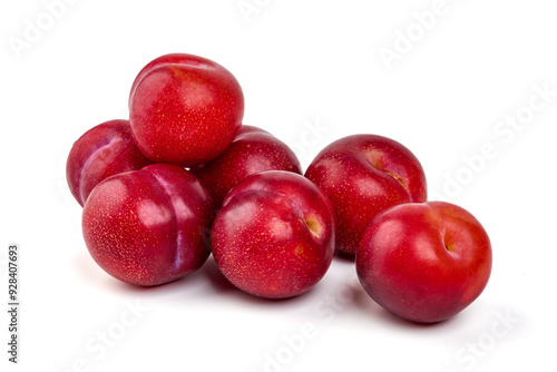 © GSDesign, Obraz premium Sweet red plums, isolated on white background.