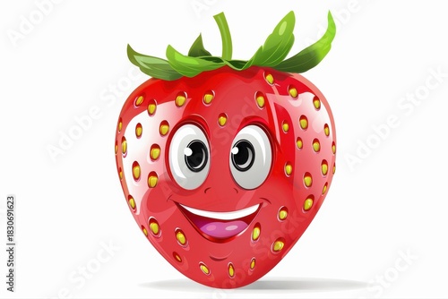 © Khadija, Obraz premium Sweet Strawberry Character Happy Smiling Fruit Cartoon Icon Animation on transparent background