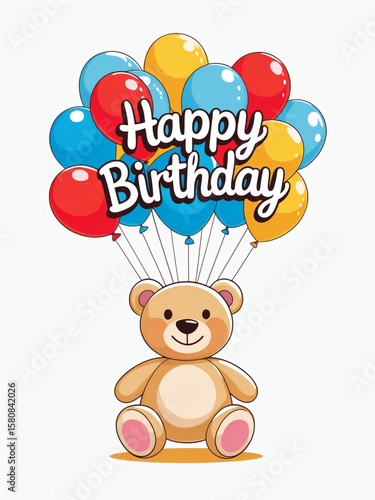 Fototapeta premium Sweet teddy bear celebrates with vibrant balloons for a joyful birthday...