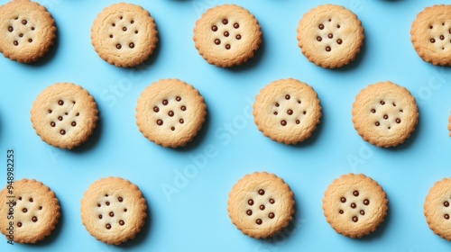 © Nihad, Obraz premium "Sweet Treats: Cookie Pattern Set Against a Blue Backdrop"