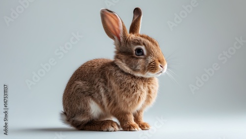 © AIArtistry, Obraz premium Sweet young rabbit with brown and white fur, isolated on background