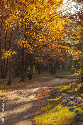 Naklejka premium Światło słoneczne w lesie jesienią. Piękny jesienny krajobraz