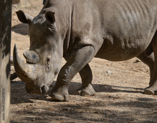Naklejka premium Świetnie wyglądający dziki nosorożec z parą rogów