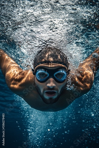 © HISTOCK, Fototapeta premium Swimmer underwater taking a breath in swimming pool