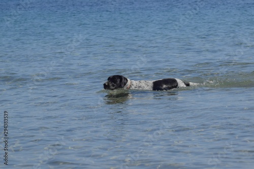 Fototapeta premium Swimming Big Dog, seaside, beach