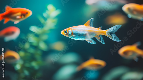 Fototapeta premium Swimming fish in aquarium marine life exhibit underwater vibrant environment...