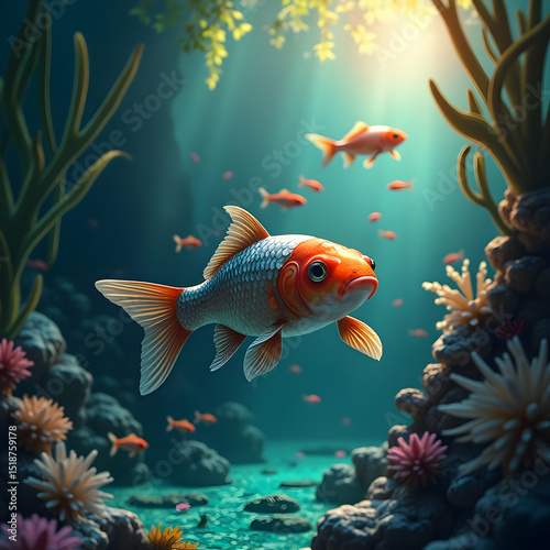 Fototapeta premium Swimming Fish Underwater with Coral Reefs in Vibrant Oceanic Scene