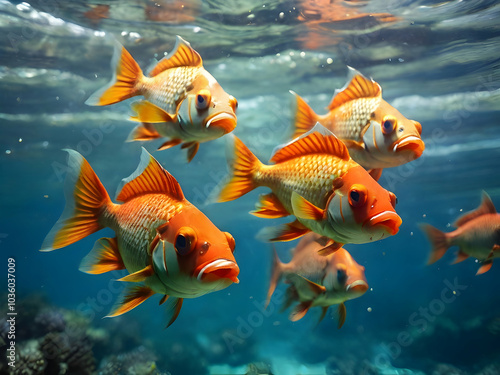 © gmstockstudio, Fototapeta premium Swimming fishes in the sea