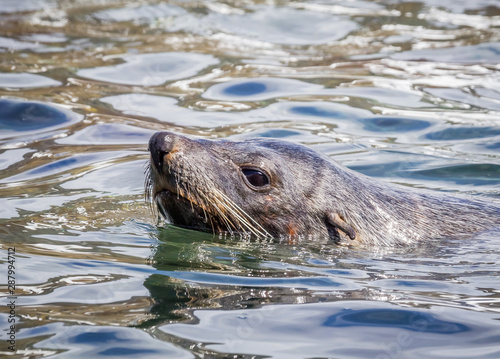 © Jo, Fototapeta premium Swimming fur seal swims near South Georgia Islands