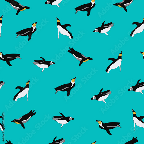 Obraz premium Swimming penguin seamless vector pattern
