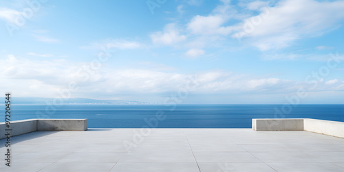Obraz premium swimming pool and sea, Empty concrete terrace with sea view and blue sky 3d...